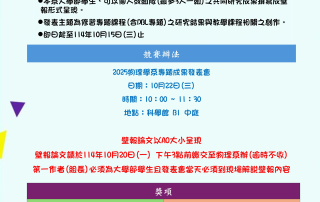 2025 物理系專題論文競賽 為激勵本系學生努力向學,並提升對學術研究及從事專題論文創作之興趣