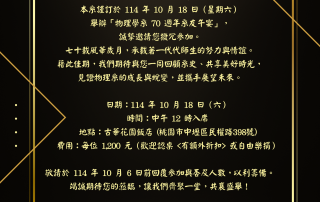 各位系友學長學姐好: 中原物理即將於10月18日(六) 迎來70週年慶祝大會!