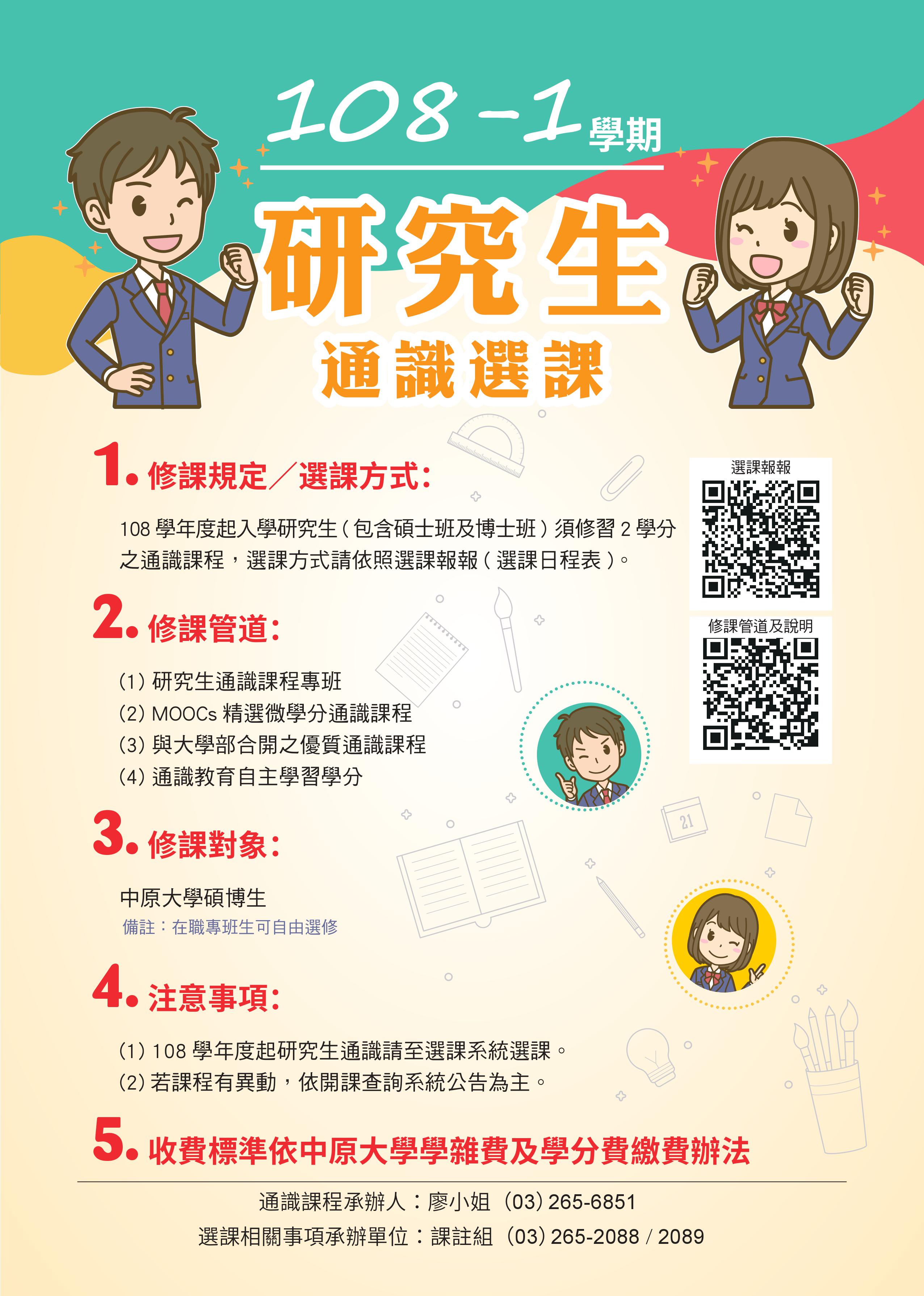 108學年度第一學期 – 研究生通識選課 108學年度起入學之碩士班及博士班學生,須修習2學分之通識課程始符合畢業標準 劉 育彣2019-08-12T15:40:31+08:00 Share This Post, Choose Your Platform! FacebookTwitterLinkedInGoogle+TumblrPinterest