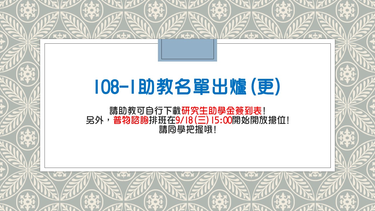 ?公告?108-1助教名單確定囉~