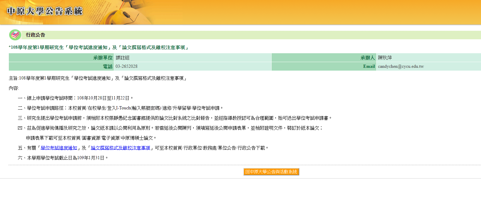 ?公告?108學年度第1學期研究生「學位考試進度通知」及「論文撰寫格式及離校注意事項」