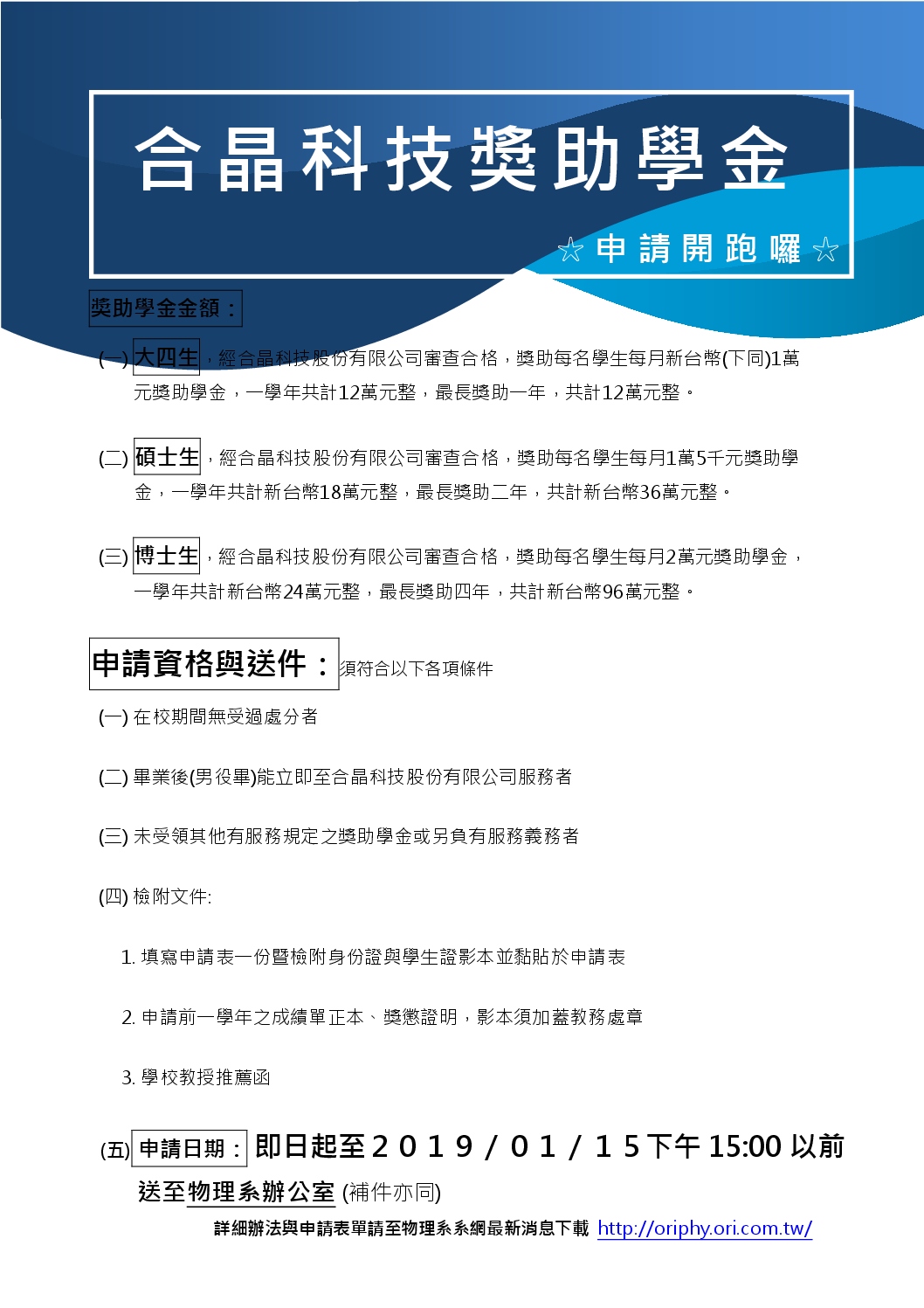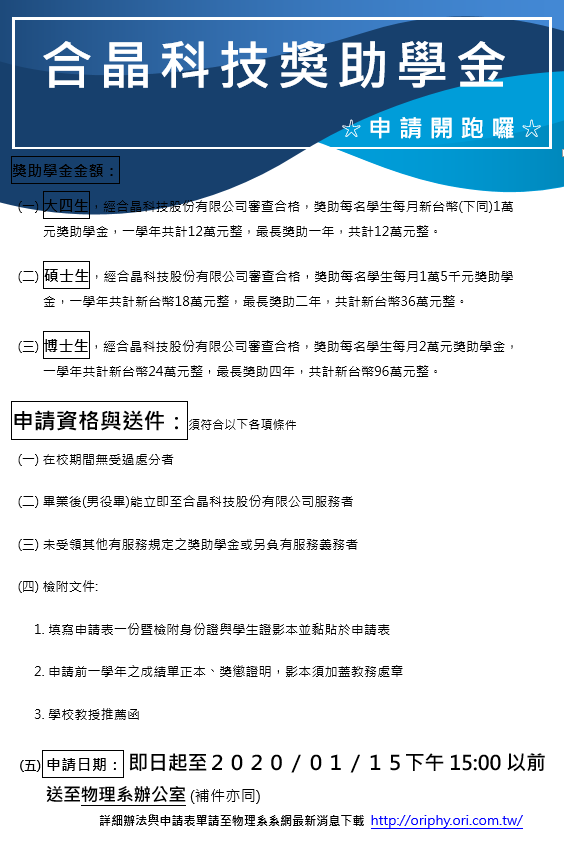 詳細辦法與申請表單請至物理系系網最新消息下載 https://phys.cycu.edu.tw/