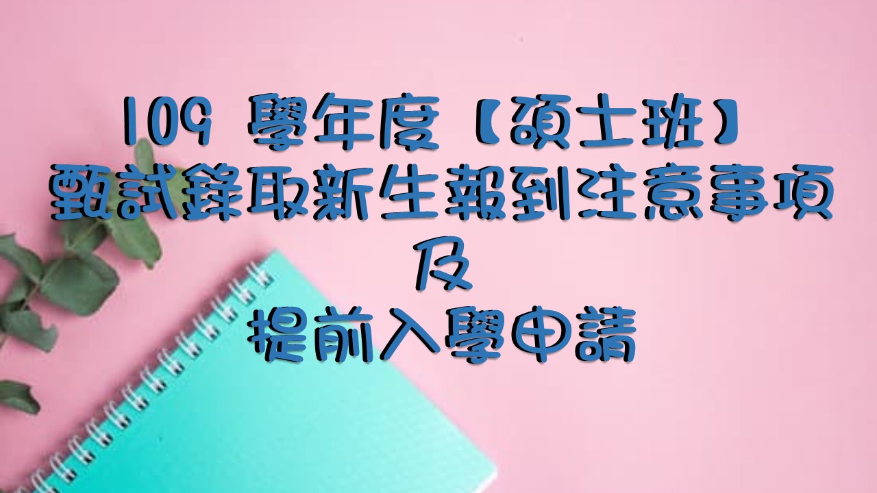 109 學年度【碩士班】甄試錄取新生報到注意事項及提前入學申請