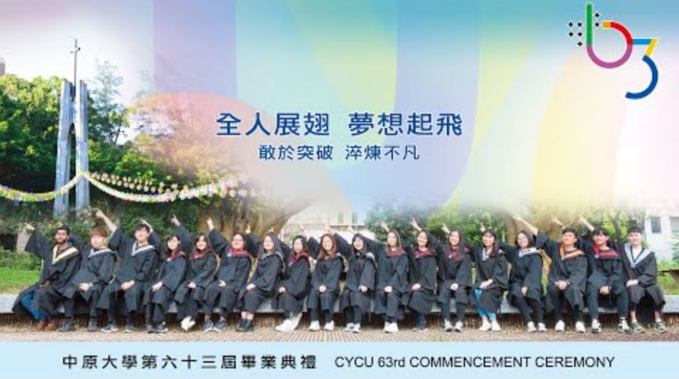 中原大學第63屆畢業式影片將於6月11日(星期五)上午10:00正式播放,公播網址:https://youtu.be/y8243IJGdT4