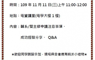 11月11日(下周三) 11:00-12:00 於電資講堂(電學大樓1樓),辦理一場申請說明會