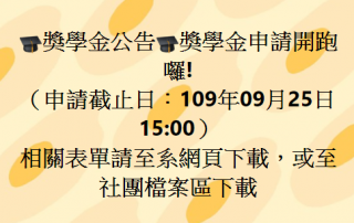 獎學金申請開跑囉! 申請截止日:109年09月25日15:00