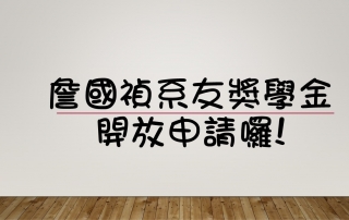 ?獎學金公告?詹國禎系友獎學金開放申請囉 申請期限:109/3/2-3/13 下午15:00將相關申請資料繳交至系辦