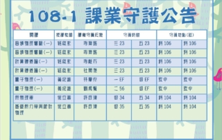 ?公告? 108課業守護時段和天使名單看這裡唷!!