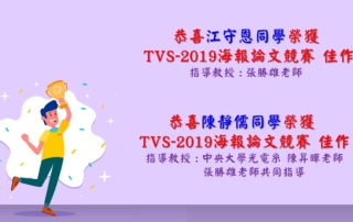 恭喜張勝雄老師指導的兩位同學 榮獲 TVS-2019海報論文競賽