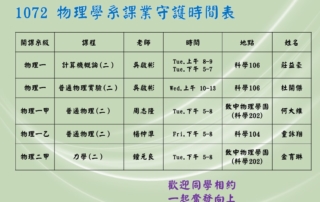 諮詢時間:3/11~6/14 (期中考前五週、期末考前五週)