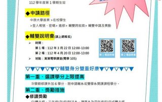 ●申請日期:3/22至5/3 ● 申請路徑:中原大學首頁→在校學生→登入帳號、密碼→進修→輔雙跨就微→輔雙申請及異動
