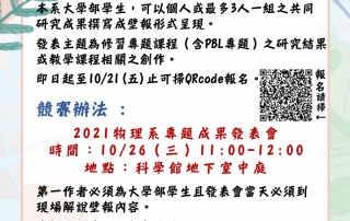一年一度系上的物理專題競賽來囉! 有興趣的同學歡迎踴躍參與~~ 優渥獎金等著你哦!